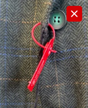 Vous retournez un costume ? Assurez-vous que l’étiquette rouge est toujours attachée.