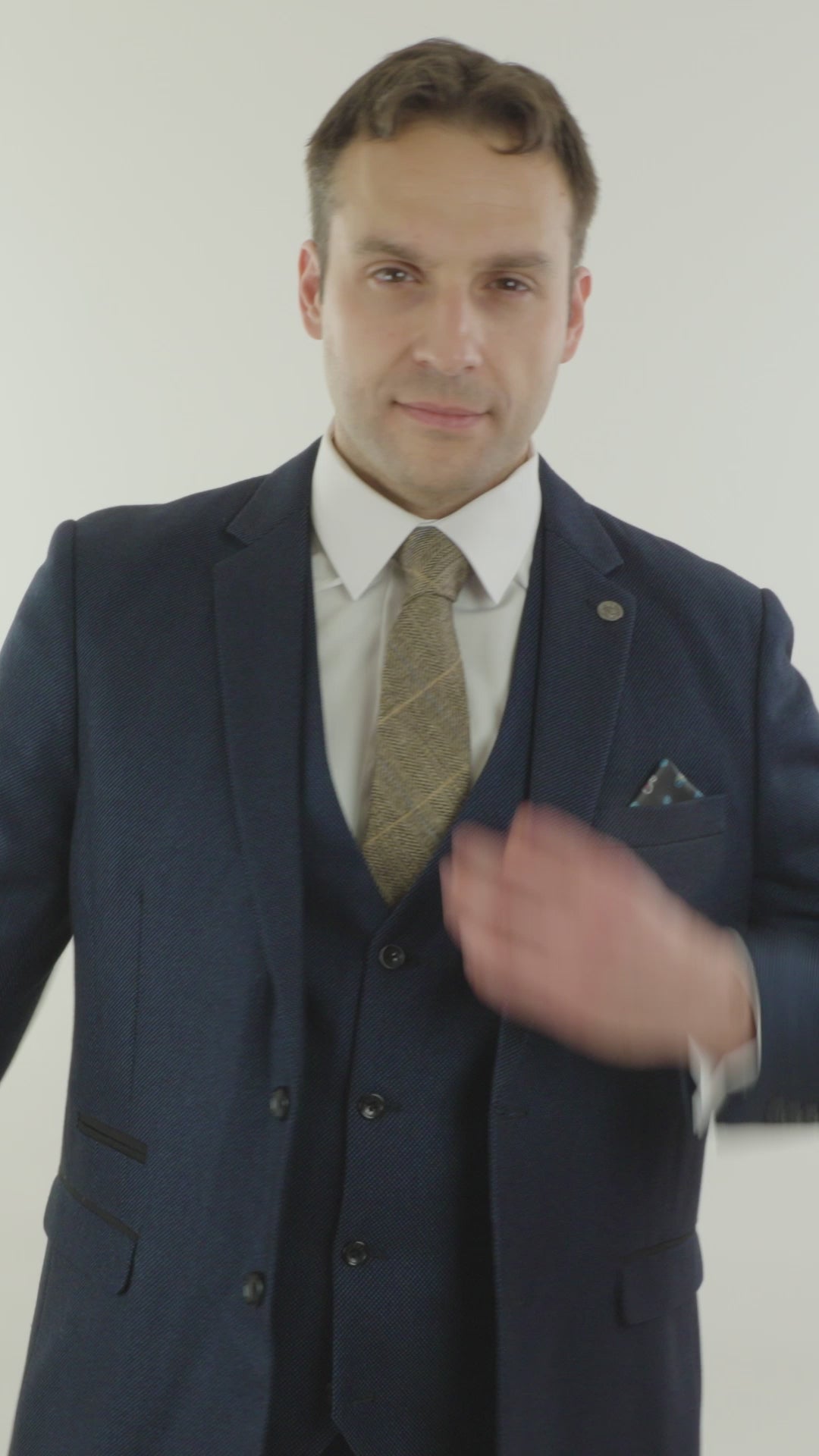 - Costume trois pièces bleu et noir pour homme, coupe ajustée