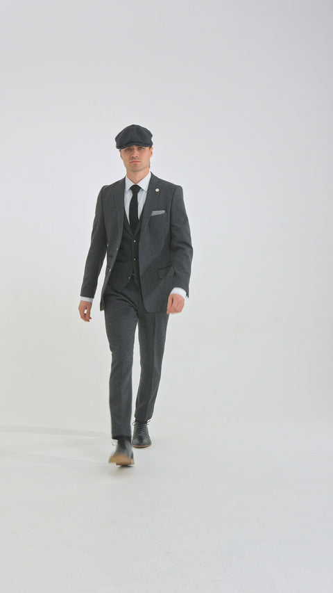 Costume trois pièces en tweed à chevrons gris anthracite pour homme - STZ11